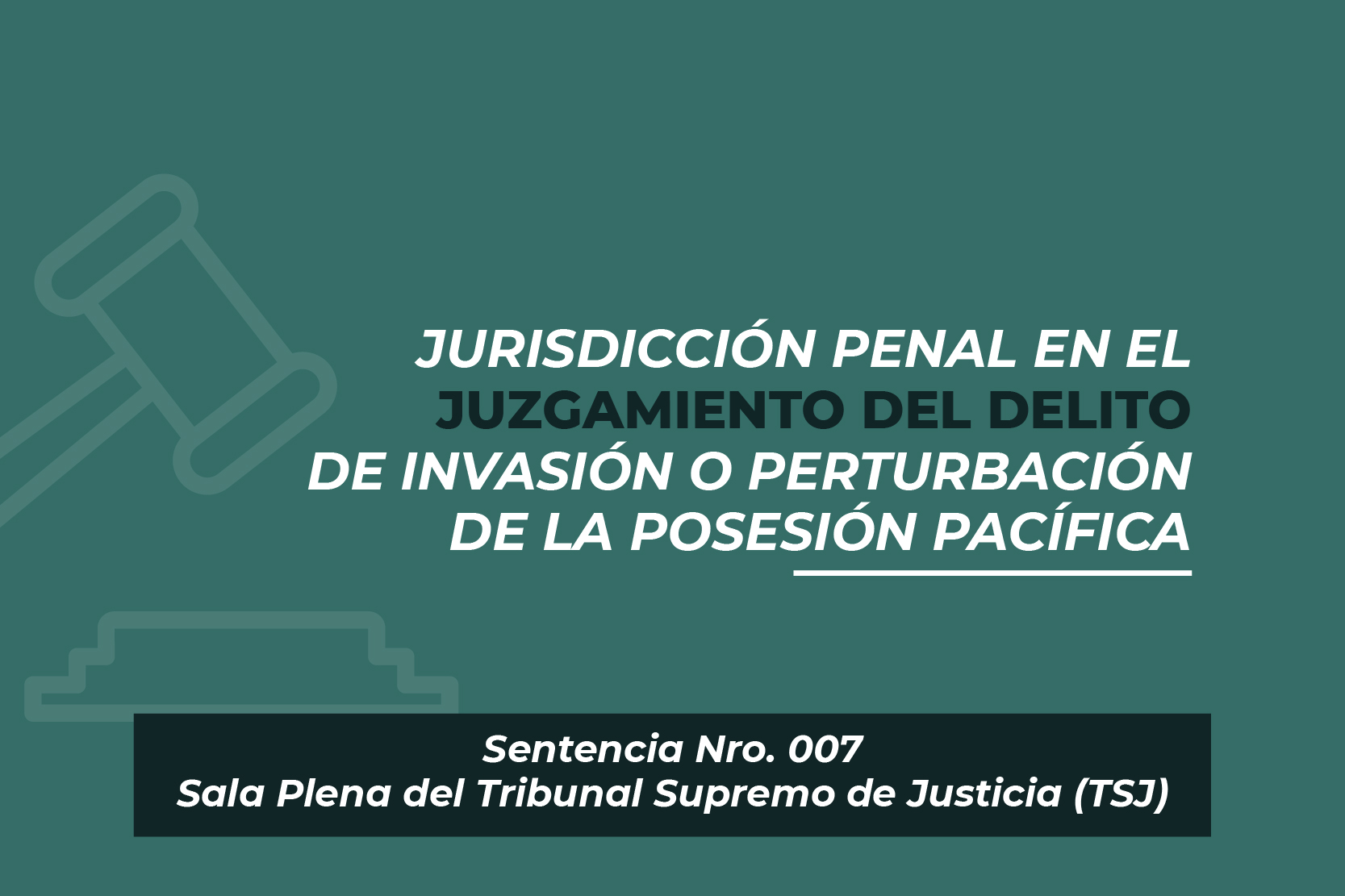 El pasado, 26 de enero del año 2023, la Sala Plena del Tribunal Supremo de Justicia (TSJ), estableció mediante Sentencia Nro. 007 que, la jurisdicción penal se considera competente para el juzgamiento del delito de invasión o perturbación de la posesión pacífica.
